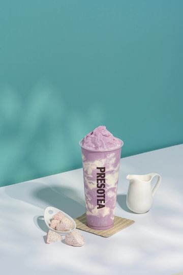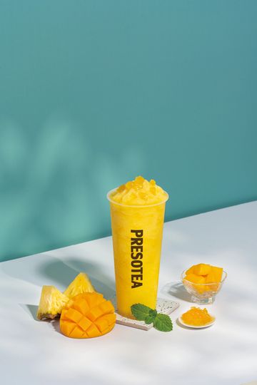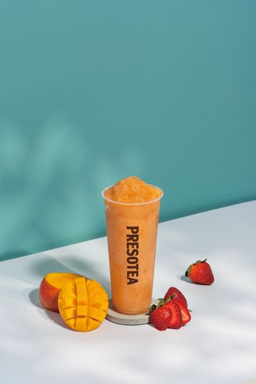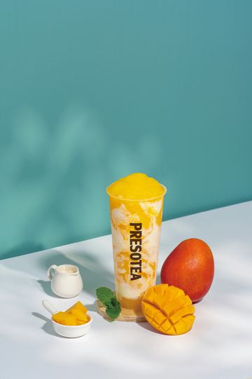 Blended fresh mango fruit, mango puree, and sea creme, contains dairy