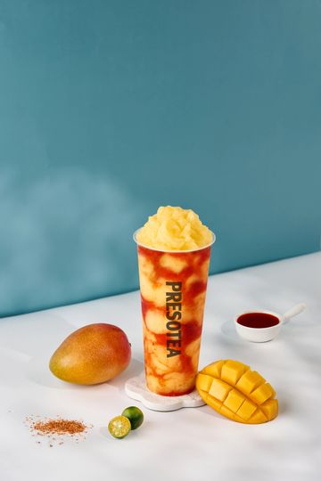 Blended fresh Mango,kumquat chamoy and tajin, dairy free