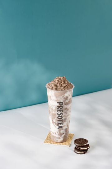 Blended Oreo smoothie with a sea cream walling and Oreo crumb topping
