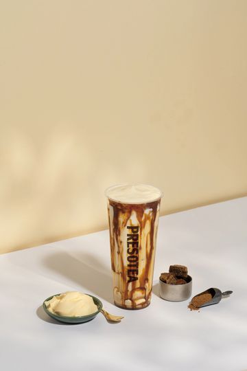 Organic fresh milk with brown sugar syrup, creme brulee & sea cream.